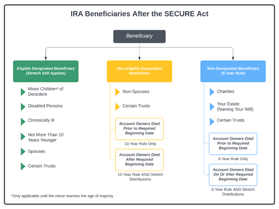 Historically, beneficiaries could “stretch” IRA distributions over their own life expectancy, minimizing annual taxes and allowing assets to grow for decades. The Secure Act eliminated this option for most non-spouse beneficiaries.